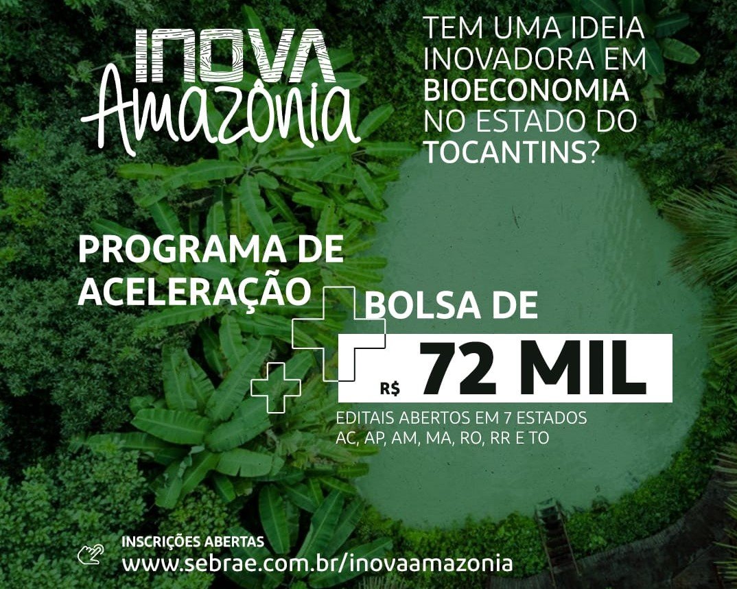 Com o objetivo de incentivar e impulsionar o mercado de bionegócios sustentáveis, foram prorrogadas as inscrições até 28 de novembro, para o Programa Inova Amazônia, lançado pelo Sebrae. Pesquisadores, empreendedores, empresários ou donos de startups no ramo de produtos ou serviços de bioeconomia podem acessar o edital aqui. Selecionados receberão mentorias e capacitações, com uma bolsa de até R$ 72 mil para desenvolver projeto inovador.